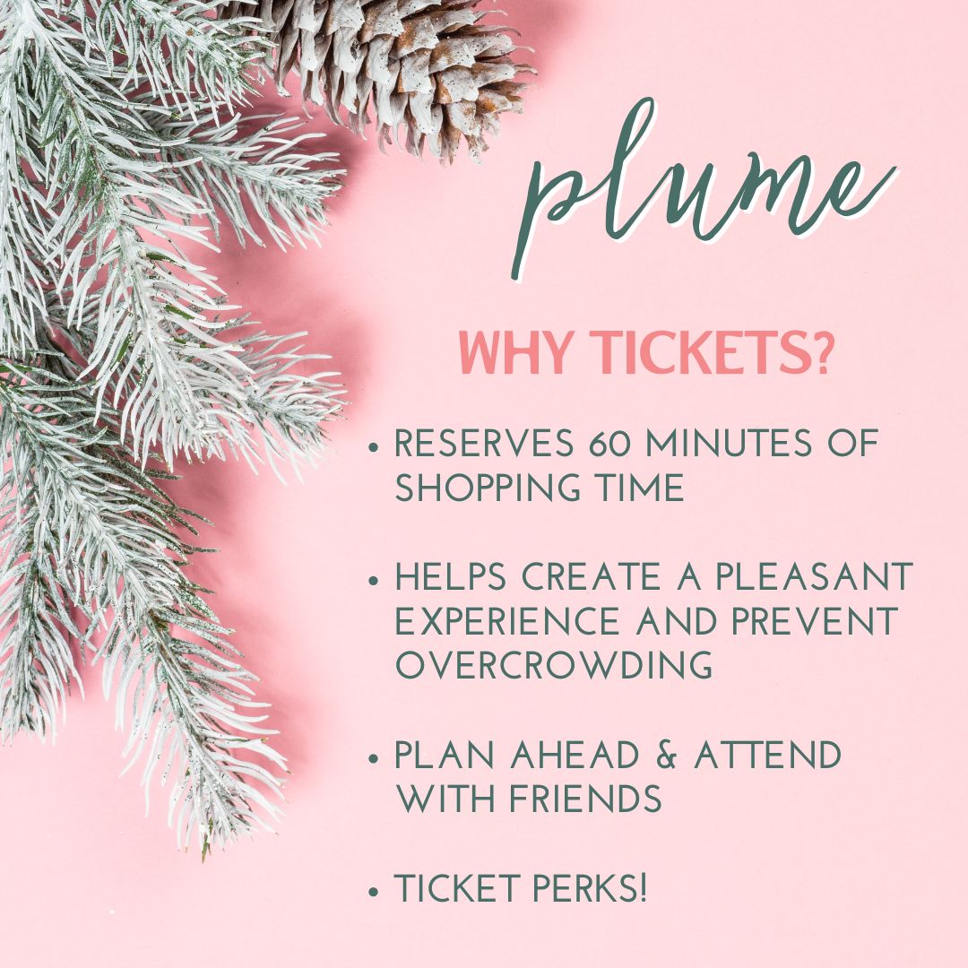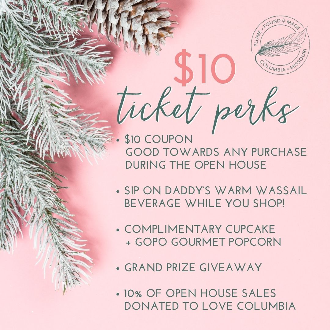 - $10 Plume Shopping Coupon (your full ticket price applied back to any purchase made during the Open House!)